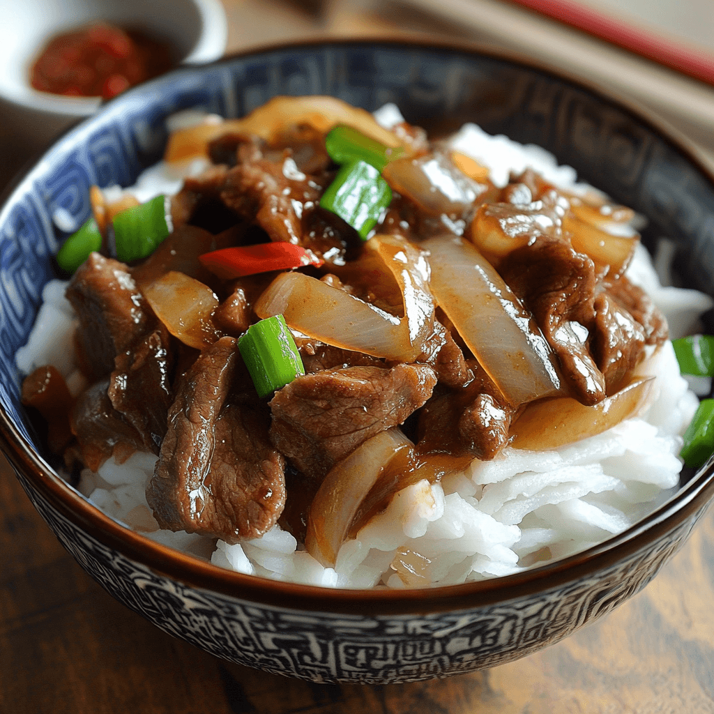 Dieses klassische chinesische Wokgericht kombiniert zart mariniertes Rindfleisch mit karamellisierten Zwiebeln in einer herzhaft-würzigen Sojasauce. Ideal für ein schnelles, aromatisches Abendessen – wie im chinesischen Restaurant!