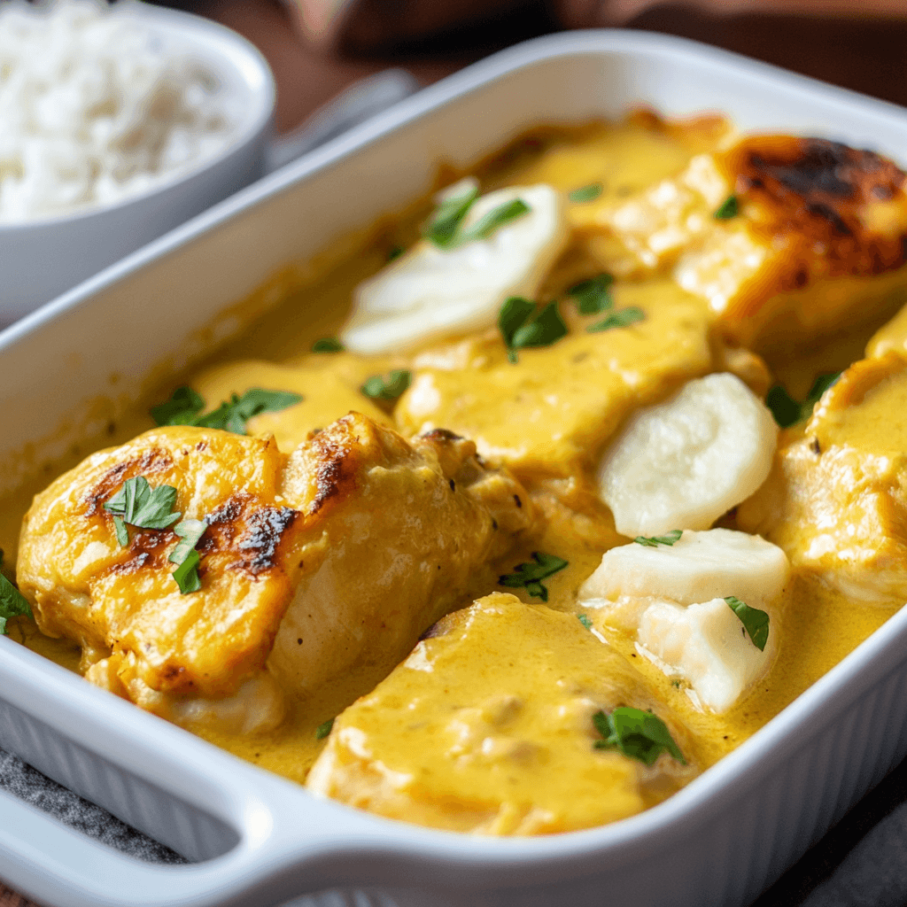 - Übergieße alles mit Sahne oder einer leichten Kokosmilchsoße.